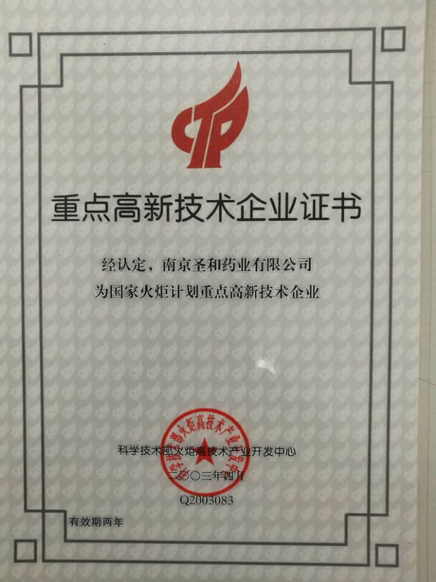 2003國(guó)家重點(diǎn)高新技術(shù)企業(yè)