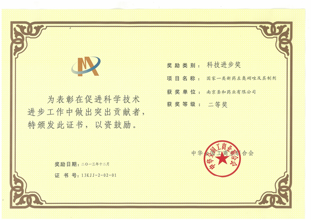2013藥業(yè)科技進(jìn)步獎(jiǎng)二等獎(jiǎng)