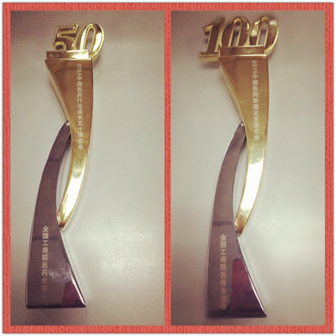 2015年度中國(guó)醫(yī)藥行業(yè)成長(zhǎng)50強(qiáng)、百?gòu)?qiáng)企業(yè)(獎(jiǎng)杯)