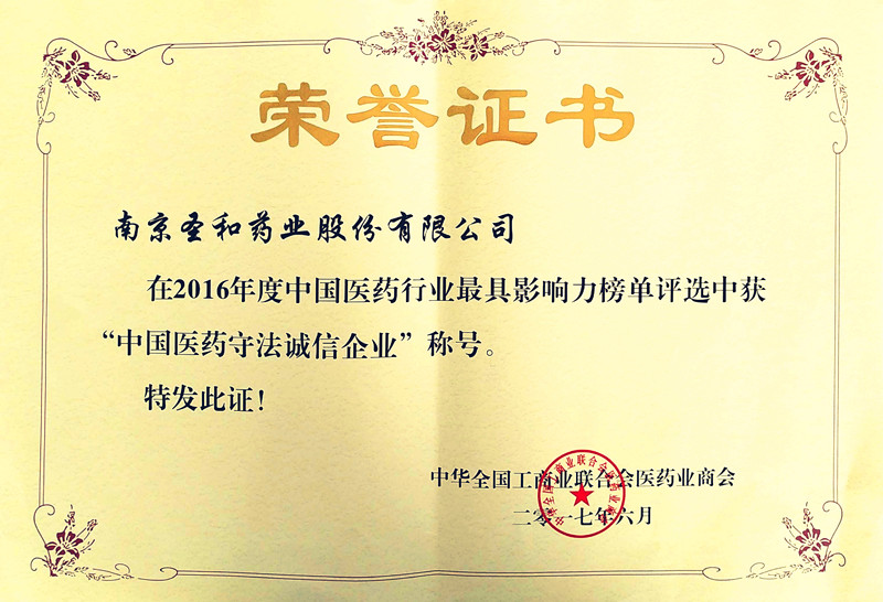 2016年度中國醫(yī)藥守法誠信企業(yè)