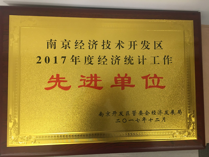 南京經(jīng)濟技術(shù)開發(fā)區(qū)2017年度經(jīng)濟統(tǒng)計單位工作先進單位