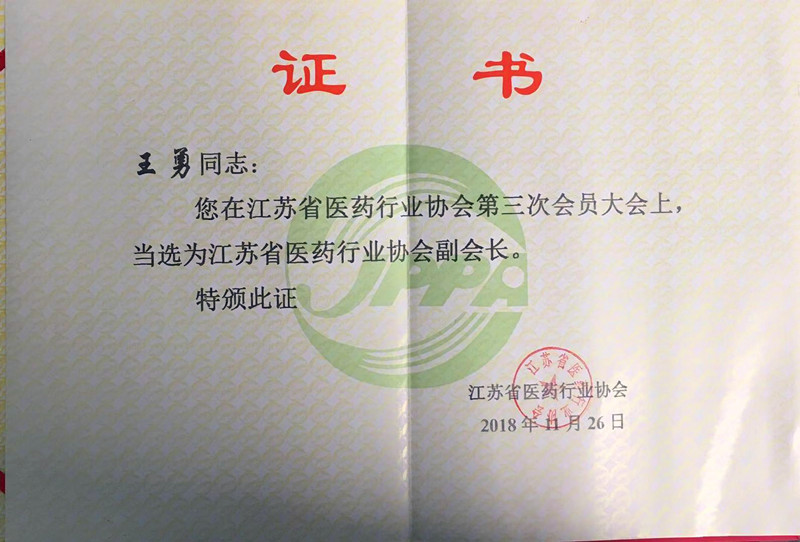 江蘇省醫(yī)藥行業(yè)協(xié)會副會長